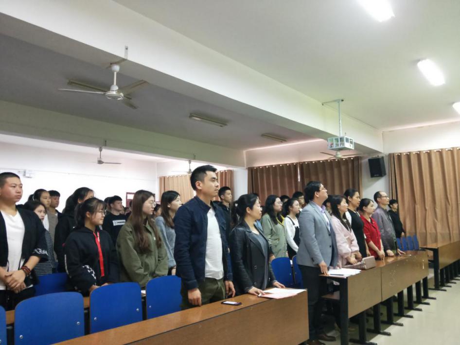 典礼在庄严而神圣的国歌声中拉开序幕。