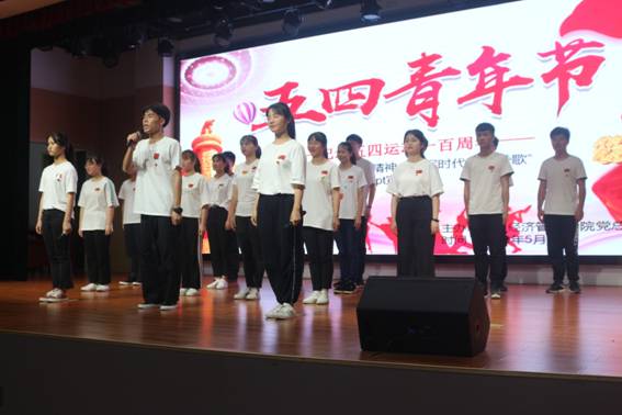 比赛结束,学生支部组织青年团员带来了诗歌朗诵《有个奇迹叫中国》及合唱《我爱你中国》,表演者们激情饱满,表达了对祖国的热爱,对五四爱国青年的敬畏,更是激起了在场师生的爱国之心。