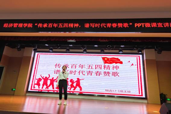 活动紧紧围绕纪念五四运动100周年,以“传承百年五四精神,唱响时代青春赞歌”为主题开展宣讲。参赛选手紧扣主题,从不同视角切入,有的深刻阐释了五四精神的意义,有的娓娓讲述自己对五四精神的感悟和体会,有的结合自身经历分享了处在新时代如何做一名有志新青年的想法,展示了当代青年的思想觉悟和青春热血。选手谢育峰同学用“五四开先河,匆匆已百年,男儿正当时,共圆中国梦”表达了对五四先辈的敬仰和对未来的憧憬;选手杨菁表示,一代人有一代人的长征,一代人有一代人的担当,我们新时代的青年重任在肩,需不断奋斗与努力。