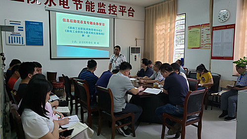 本网讯 6月25日下午,信息后勤党总支在后勤处党员活动室开展了采购招标工作专题业务培训会,重点解读了《湖南工业职院采购管理办法》《湖南工业职院分散采购实施细则》等文件内容。信息后勤党总支约30名党员职工参加了学习会,培训会由信息后勤党总支书记任东主持。
