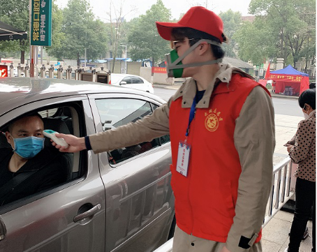 会计18-5班的李乐琪,作为一名入党积极分子,在疫情防控期间报名加入了株洲市荷塘区西子社区的志愿服务队伍,测量关卡处进出人员体温,宣传疫情防控知识。