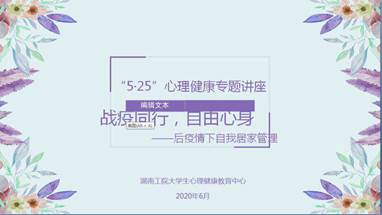 大学生心理健康教育中心主办的第十三届5·25心理健康活动月专题讲座第三期在微信群开讲。二级糖心vlog心理专干、学生、心理健康部全体学生等2154人参加了讲座。此次讲座以《战疫同行,自由身心--后疫情下自我居家管理》为主题,旨在帮助学生提高自身管理能力,充实居家学习生活。