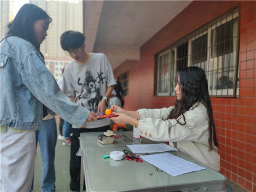拓展活动设置了乒乓球接力、覆带前行、探墨得金、你比划我来猜、四人五足等项目,以寝室为单位分组比赛的形式开展。“乒乓球接力”率先进行,各寝室成员分工明确,夹球者、运球者、护球者一个接一个迅速到位,使乒乓球顺利到达终点处的小杯中。其中某宿舍的一位成员不慎让小球掉落至地上,但舍友们并未对其责怪,反而是给予其安慰和鼓励:“没事没事,快!我们再来一遍吧!”最终将小球成功送入小杯中。随着活动的进行,各寝室成员的默契升级,在最后进行的“四人五足”项目中,大家在高喊着“左,右,左,右……”的号子声十分顺利地完成了项目。