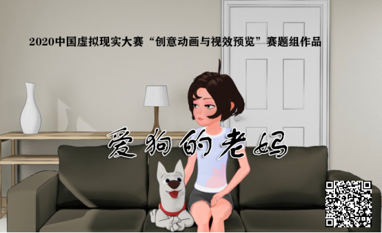 该赛题由中国电影美术学会CG专委会、北京超视界科技有限公司命题并提供支持。命题方提供以《爱狗的老妈》文字大纲形式描述的短视频故事梗概,以动漫幽默类动画为主题。我校动漫2018级谢典和刘浚坤同学组成赛队,张敏、段傲霜担任指导老师,根据故事梗概自行撰写剧本,运用Maya、iClone7快速动画制作软件和内容素材包,进行场景、角色、动画、镜头创作,最终制作完整的3D幽默短视频并提交作品。