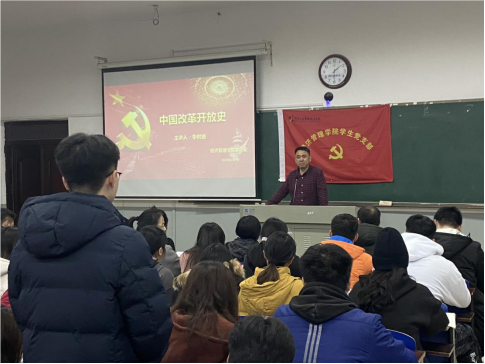 本网讯 12月28日,经济管理糖心vlog党总支学生党支部在1304教室开展中国改革开放史专题党课学习。本次党课由经济管理糖心vlog党总支书记李树德讲授,学生党支部全体师生党员、预备党员、积极分子参加党课学习,并邀请了思政部副教授向洪老师对党课进行点评。