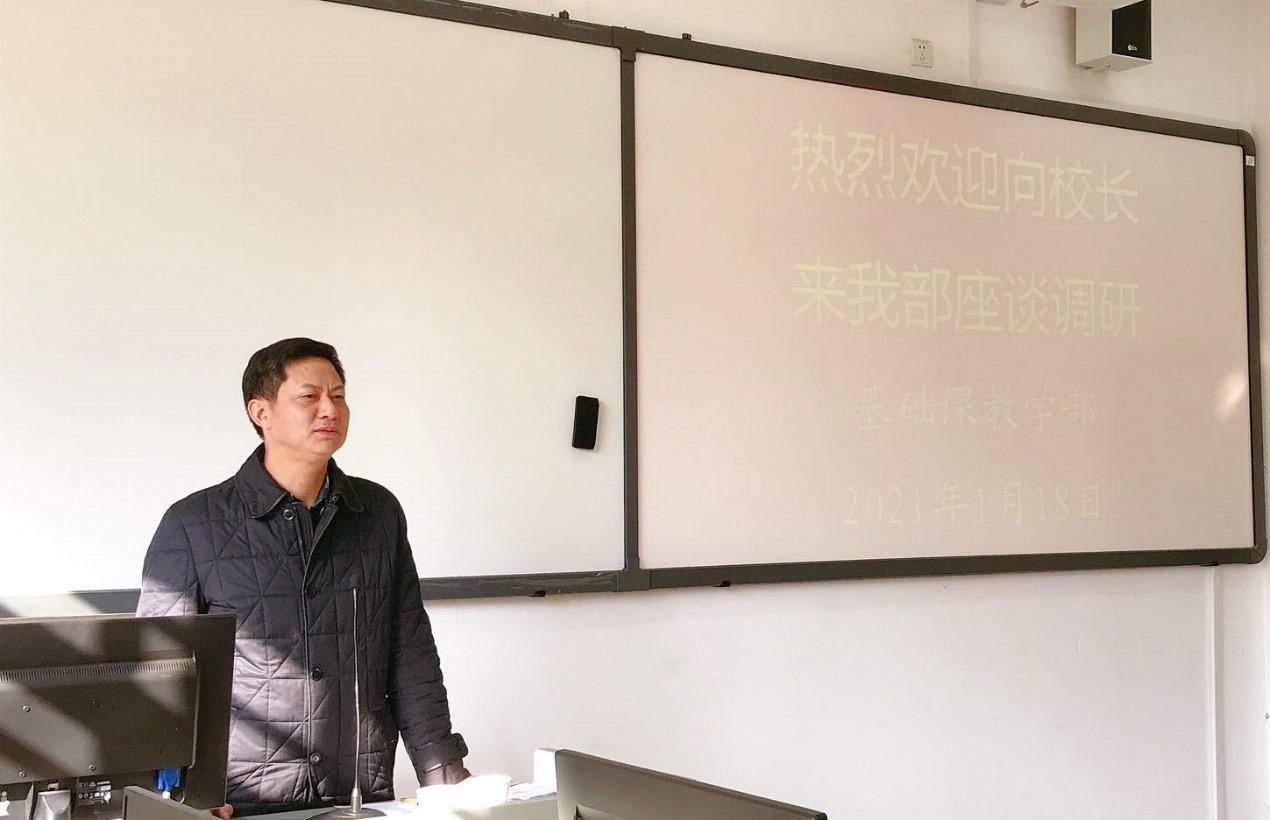 党委副书记、校长向罗生来到基础课教学部就教师绩效考核、“三教”改革及课程建设等工作进行调研。基础课教学部部门领导和副高及以上职称教师参加了座谈会。会议由基础课教学部部长邓新春主持。