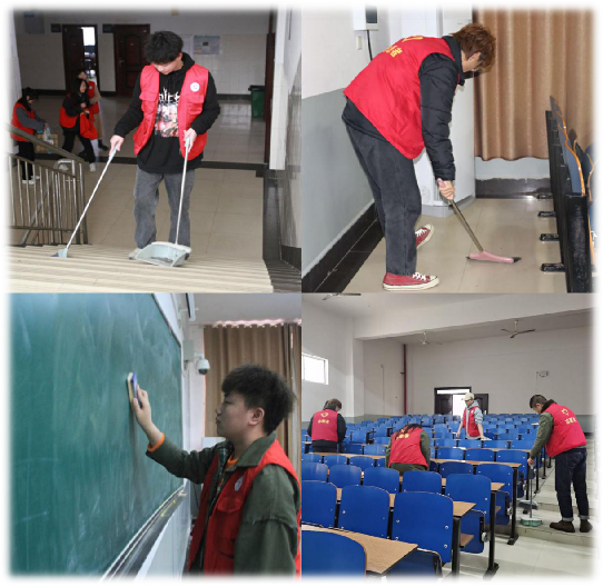 活动现场,全体志愿者们仔细清扫了教学楼的每一个角落,在他们的努力下,躺在黑板角落的粉笔灰,蹲在墙角及墙顶的灰层,以及藏在各个角落的垃圾,都回归到它们的“归宿”。以小我的真诚,还原人之向善、进取的精神;以小我的行动,诠释人之美好、希冀的愿望。志愿者们以行动来诠释雷锋精神的传递。