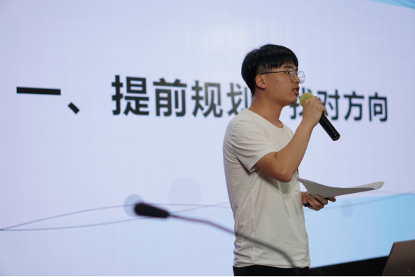 被广州大学录取的梁旭以《请相信努力一定会有回报》为主题,结合自身经历和社会大背景,从“三自信、四计划、五备考”向在场同学讲述自己的故事。“在备考期间,班主任罗德贤老师给了我很大的的鼓励,更坚定了我的信心。”他表示,坚定信心对升本考研都是非常重要的,有了信心,目标计划才能更好地付诸于行动上,行动才可以“治百病”。