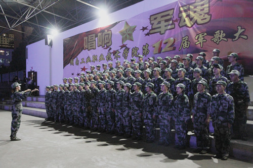 新生军歌大赛是我校军训工作的重要内容,既是对军训期间学生学唱军歌成果的检验,也是对大学生进行爱国主义和民族精神教育的生动一课。
