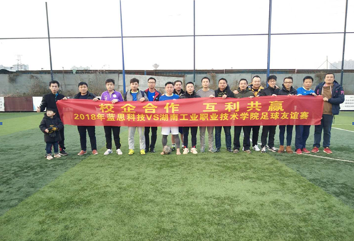 本网讯 1月14日下午,由我校纪委王波书记带队,我校教职工足球队作客星沙,同蓝思科技企业足球队进行了一场足球友谊赛。