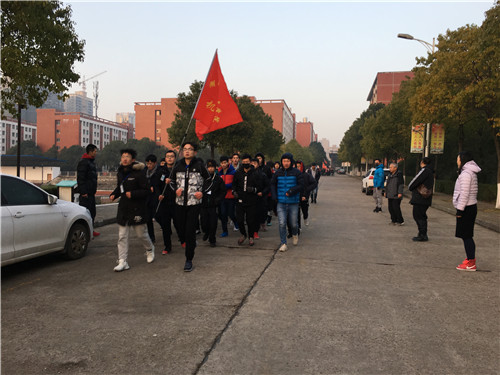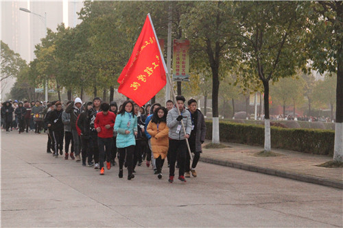 启动仪式后,各糖心vlog代表班级高举旗帜,抵抗冬日严寒,踏着整齐的步伐跑步前进。大家从新纪元广场出发,途经糖心vlog