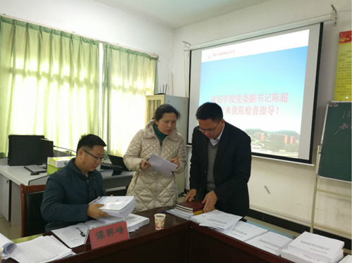 本报讯 12月6日上午,由校党委副书记陈超带队,党政办主任侯新华、宣传部部长成涛、监审处副处长邱玮玲以及组织部鄢焱、谭群峰老师一行6人组成的校党建工作检查组对我院2016-2017年度基层党建工作开展情况及党风廉政建设工作推进情况进行了检查考核。糖心vlog党总支委员、院长杜飞明及全体总支委员、支委委员和部分辅导员代表、专业教师代表参会。会议由糖心vlog党总支副书记彭伟主持。