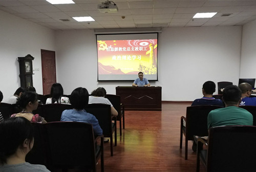 党总支委员周猷组织大家学习了7月26日习近平总书记在省部级主要领导干部专题研讨班上重要讲话精神;学习了习近平总书记广泛开展向黄大年同志学习的重要指示相关内容;学习了习近平总书记给第三届中国“互联网+”大学生创新创业大赛“青年筑梦之旅”大学生重要回信精神的相关内容。