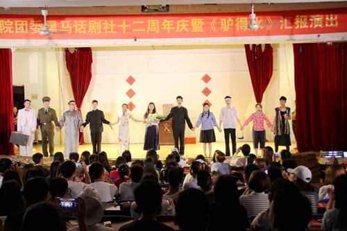 本网讯 6月13日晚,校团委黑马话剧社十二周年庆暨《驴得水》话剧汇报演出在大学生活动中心精彩上演。