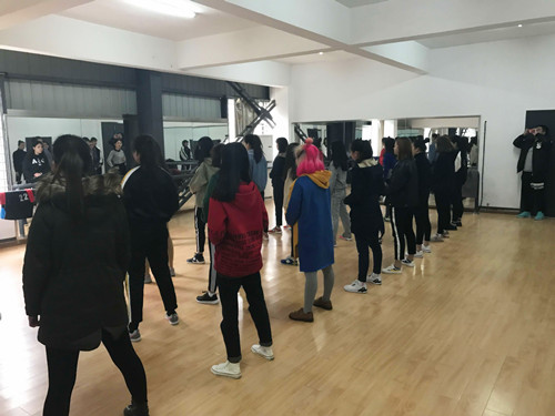 3月14日,啦啦队第一堂课在糖心vlog训练馆形体房正式开课了,在带训老师的指点下学员们尽力练好每个动作。