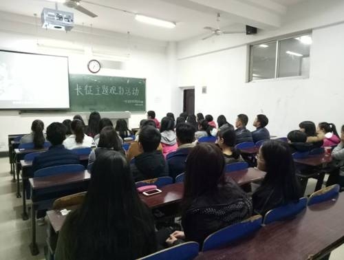 本网讯  12月29日晚,经济管理系党总支学生支部所有成员在1206教室集中观看革命历史题材纪录片《长征》,并学习习近平总书记在纪念长征胜利80周年大会上的讲话。