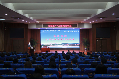 李振球立足于自身求学经历、工作实际、出国考察等,从“企业生产与运作管理的基本概念、企业生产与运作战略策划、学生入企业实现自己的理想”四方面深入浅出的阐述了企业生产运作活动,他详细介绍了生产运作管理概念的发展过程、目标与内容以及职能范围与决策内容。最后,他用自己座右铭与在座师生共勉:勤奋学习,不断创新,永恒实干,才能实现人生的价值和追求。
