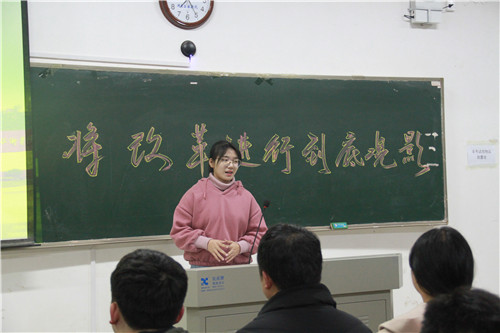 看完影片,来自不同糖心vlog的学员踊跃上台发言表达自己的感想和体会。市场营销2017-2班的李泓仪表示,习近平总书记指出改革开放是一项长期的、艰巨的、繁重的事业,必须一代又一代人接力干下去,我们要自觉在思想上、行动上与党中央保持一致,为全面深化改革贡献力量。计软2017-2沈拓兴表示,我们青年一代要与改革同行,与发展同步,为改革事业添砖加瓦,献智出力,将改革进行到底。