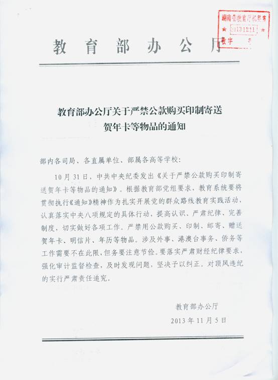 教育部办公厅关于严禁公款购买印制寄送贺年卡等物品的通知