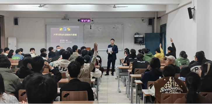 接着,涂岭书记从两个角度阐述了大学生职业生涯规划的意义。一是讲解当前专业在本省的优势政策和未来发展,为大学规划和未来求职提供方向指南,并增强了同学们的专业信息。二是通过对学生自身性格的分析,讲述职业生涯规划对学生未来发展的影响。