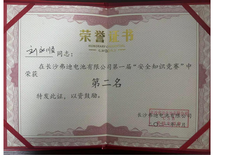 工作期间表现优秀,处理异常能力强,维护设备技术可靠,能够克服困难持续作业,被评为优秀员工。同时,在该公司开展的第一届“安全知识竞赛”中荣获第二名。刘永顺表示:“在以后的工作中,我仍会继续保持和努力”。