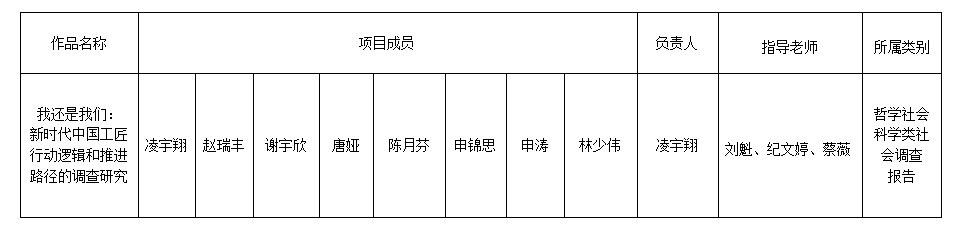 经省赛评审,按照共青团湖南省委《关于推报优秀作品参加第十八届“挑战杯”全国大学生课外学术科技作品竞赛的通知》,我校拟有1项作品参加第十八届“挑战杯”全国大学生课外学术科技作品竞赛。公示期五天,如有异议,请向校团委反映,电话:0731-82946273。:
