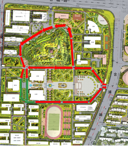 附件:校园内主干道单向行驶区域和临时即停即走区域示意图
