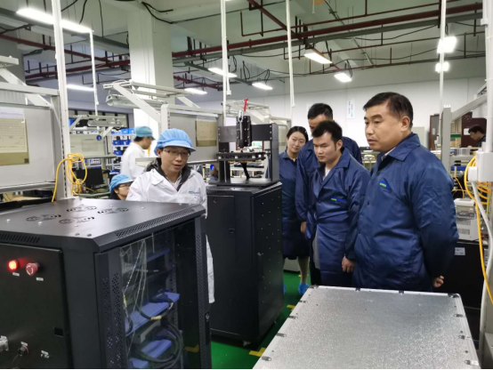 之后,杜飞明一行参观了嘉成科技产品测试中心,现场就嘉成科技产品综合测试平台的技术方案和使用方法进行了深入交流探讨。