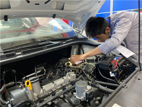 复赛自上午8:40持续至下午14:30,参赛选手分五组、五个时间段进行考核,在规定时间完成对捷达汽车的基本检查和汽车故障诊断。复赛现场,选手们打开引擎盖,逐个摸排零件故障,沉着冷静进行操作。考察的知识点包括对汽车的外观、内饰、发动机舱的检查,以及对所出现的故障码进行读取,根据故障码对车辆进行故障点的追踪,对故障点电压、电阻进行检测判断是否异常,同时根据检查的实际情况将检查结果填写到任务工单上。