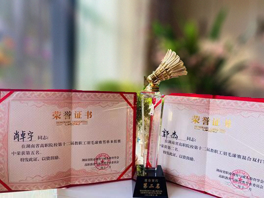 赛场上,我校教职工羽毛球队队员轮番上阵、不畏强手、奋勇拼搏。经过数轮激烈角逐,我校羽毛球队李陟威、郭杰荣获混合双打第二名,肖卓宇荣获男子单打第五名。在混合团体赛中,多位主力队员受到伤病困扰,虽无法发挥最佳水平,但队员们还是团结协作、克服困难、敢打敢拼,坚持完成了团体赛的每一场比赛,我校也因此荣获了“体育道德风尚奖”。