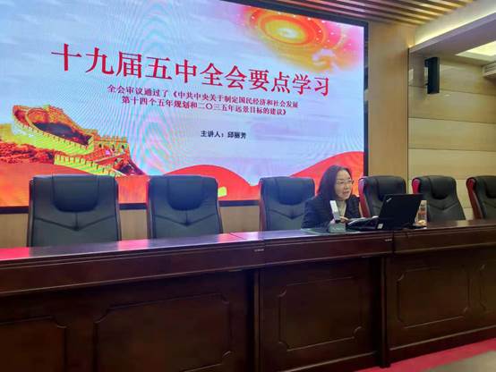 邱丽芳围绕党的十九届五中全会一个重要判断、决胜全面建成小康社会取得的10方面决定性成就、我国发展环境面临的深刻复杂变化、到2035年要实现的9方面远景目标、“十四五”时期经济社会发展的6方面主要目标、实现奋斗目标的12方面具体举措等内容,对十九届五中全会进行了系统阐释和深入解读。党课内容全面深刻、系统透彻,具有很强的理论性、思想性和指导性,让听课人员对党的十九届五中全会有了更加全面深刻的认识。