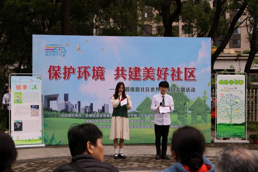 本网讯 4月22日,信息工程糖心vlog“信福一家”志愿服务小队应邀参与了由东塘街道芙蓉南路社区、长沙第一社会福利院、湖南省职业病防治院、长沙市福民社会工作服务中心共同举办的公益义演活动。本次活动以“保护环境,共建美好社区”为主题,在东塘街道芙蓉南路社区职防院同心圆广场举行,“信福一家”志愿服务团队为活动献上了精彩表演。