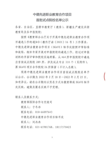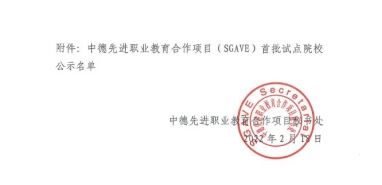 本网讯 为深入贯彻落实习近平总书记对职业教育工作的重要指示和全国职业教育大会精神,深化产教融合、校企合作,深入推进育人方式、办学模式、管理体制、保障机制改革,借鉴“双元制”办学模式,推动建设具有国际先进水平的中国特色职业教育体系,按照《国家职业教育改革实施方案》《教育部等八部门关于加快和扩大新时代教育对外开放的意见》等文件精神,教育部与德国等欧洲职业教育模式先进国家行业龙头企业联合实施中德先进职业教育合作项目(Sino-German Advanced Vocational Education,简称SGAVE项目),我校(新能源汽车技术专业)入选“中德先进职业教育合作项目首批试点院校”。