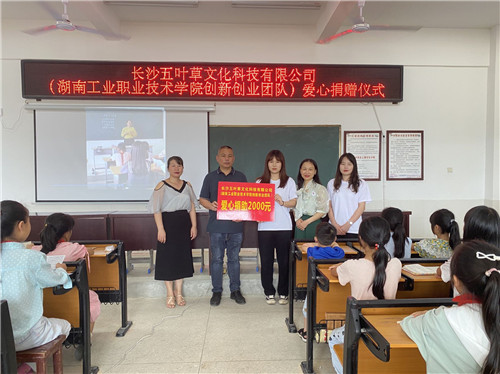 该团队此行还来到了女书发源地——江永县上江圩镇中心小学,将女书文创产品在高校校园内销售所得收益捐赠给该校学习女书的贫困学生,鼓励她们好好学习女书,播下传承女书文化的种子。