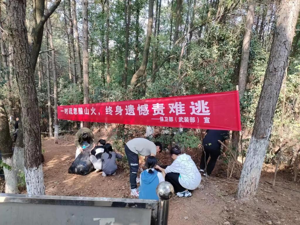 保卫部、武装部组织100余名师生志愿者在校内鹤鸣山开展“绿色呵护你我他,护林防火靠大家”消防安全隐患清理志愿服务行动,对鹤鸣山存在的消防安全隐患进行了排查和整治。