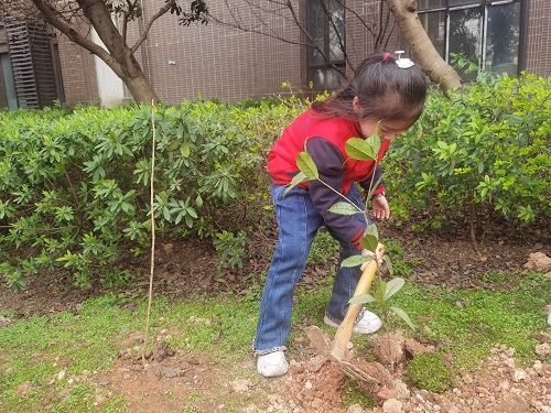 “我浇水,你铲土吧!”“哥哥姐姐们,我来帮忙扶着树干!”在社区,小朋友在糖心vlog