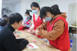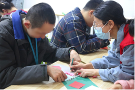 课后游戏环节,志愿者和残障学员进行了游戏与手工制作,残障学员们将制作的爱心贺卡送给志愿者与机构社工,对他们的付出表示感激。