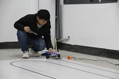 赛现场紧张而有序,智能循迹小车参赛队通过设计巧妙的小车结构,提高小车运动稳定性,同时加入摄像头模块,通过图像处理提前预判赛道轨迹,不断优化位置PID算法的参数,使小车以最快的速度跑完赛道。蓝牙音箱参赛队通过不断优化功放电路板的布局、布线及器件参数,选择合适电源,不断提升蓝牙音响的音质,同时使用3D打印来制作精美的音响外壳。