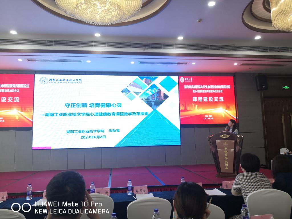 心理健康教育课程教学改革探索》主题发言。张秋亮从师资队伍建设、课程体系设计、教学模式创新、考核方式改革等四个方面分享了我校心理健康教育课程改革探索中的亮点和工作经验,得到了与会人员的认可,充分展现了我校心理健康教育工作的特色和成效。