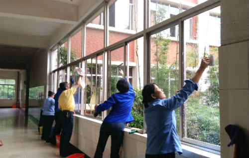 比赛开始了,大家热火朝天开始行动,有的保洁员玻璃擦得又快又亮,动作非常迅速;有的保洁员格外细致,边边缝缝全不放过。经过两个多小时的努力,呈现在大家面前的是光可鉴人的玻璃和焕然一新的楼梯走道。