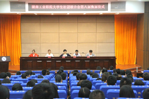 本网讯 5月19日,第八届大学生社团联合会换届仪式在图书馆多功能报告厅举行。出席换届仪式的有院团委书记黄敏、院团委副书记李陟威、社联主席李思月、社联副主席李冬及各社团成员。