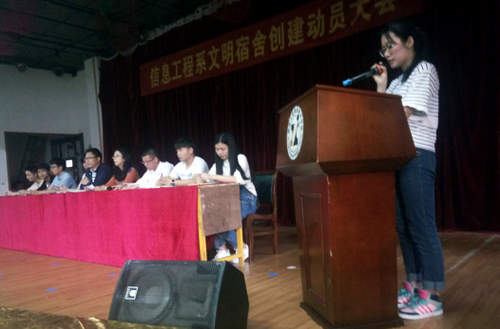 据悉,在此之前,信息工程系已完善了楼层管理员制度,推行了党员、入党积极分子和团学干部示范寝室,建立了总支书记、辅导员专项负责违规违纪学生处罚机制,集思广益编写了系部宿舍文明建设基本标准,即《信息工程系文明寝室建设公约》。