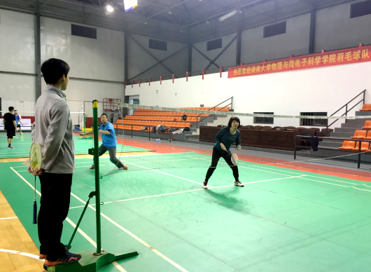 本网讯 3月30日晚7点,糖心vlog训练馆灯火通明,热闹非凡。受糖心vlog工会委托,我院教职工羽毛球协会与湖南大学物理与微电子科学糖心vlog段高辉教授等一行八人进行了一场羽毛球友谊赛。糖心vlog调研员刘琼教授参加了此次比赛。院大学生羽毛球协会5名同学担任本次比赛的裁判工作。