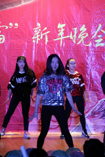 在播放信息工程系老师们的祝福视频后,一曲热舞《HOT》拉开晚会的序幕。