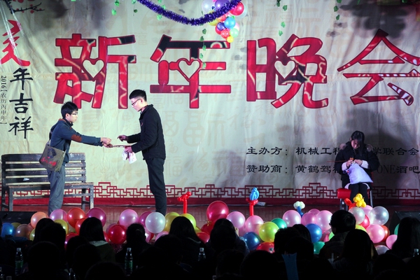 本网讯 12月30日,由机械工程系主办、机械工程系团学联合会承办的“青春万岁”新年晚会在大学生活动中心举行。学生工作处处长杨文斌、院团委副书记黄敏、院团委副书记伍俊晖、机械工程系党总支书记马跃龙及全系师生共同观看了本次晚会。广播站赵帅、黎潇、陈杰、唐小荷主持晚会。