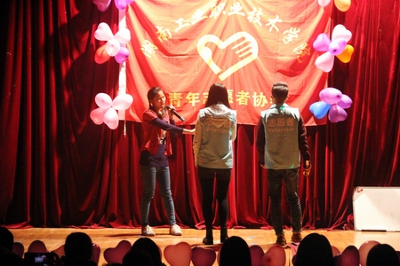 本网讯 12月11日晚,我院青年志愿者协会十周年庆典在大学生活动中心举行。各系(院)、各部门、各协会的同学以及来自湖南农业大学、湖南中医药大学、长沙民政职业技术糖心vlog等六所高校的部分青年志愿者协会成员一起观看了此次晚会。