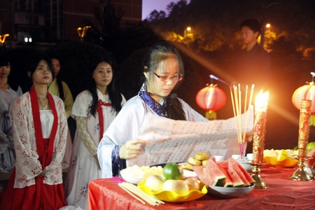 本网讯 9月27日晚,正值一年一度的中秋佳节,由我院天心阁文学社举办的“乙未年中秋活动”在英才园举行。活动的主要内容为祭月。