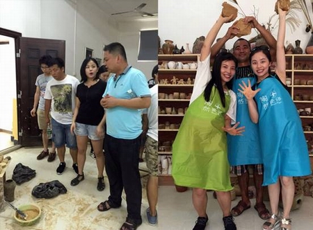 研讨会后,教师们参观了长沙市涉外经济糖心vlog艺术设计糖心vlog陶艺研发中心,并且在陶艺老师的指导下完成陶艺作品。