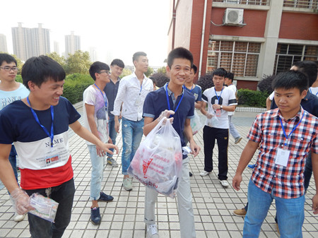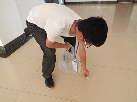 下午1点40分,学生党员、学生干部和志愿者们在图书馆门口集合完毕后,同学们便分区域开始了活动。活动人员总共分为四个组,主要是在活动范围内捡拾烟头、烟蒂,同时对在非吸烟区吸烟的人员进行劝导。太阳正值当头,天气比较炎热,相对室内来说,负责室外地面的同学需要清理的烟头更多一些,大家顶着炽热的阳光认真仔细清理着角落里不起眼的烟头。但同学们并没有喊热喊累,相反,大家的热情也如同骄阳一般高涨。