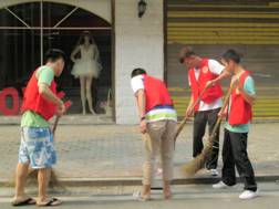 学员们积极合作 共同清扫卫生